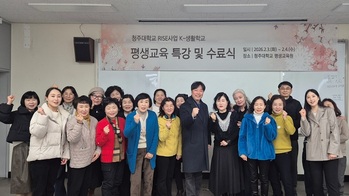 충북 청주대 장수미 교수, 호스피스 분야 우수논문상 수상 청주대학교(총장 김윤배)는 사회복지학과 장수미 교수가 최근 서울성모병원에서 열린 한국호스피스완화의료학회 동계학술대회에서 우수논문상을 수상했다고 10일 밝혔다.장 교수는 '호스피스 사회복지 실천의 성과와 장벽: 질적연구(Achievements and Barriers in Hospice and Palliative Social Work Practice: A Qualitative Study)'를 주.. 충북대 사범대학, 교원양성 전 영역 우수 등급 청주시, 2027년도 국비 2조 2714억원 확보 추진 제천시보건소, 올해부터 ‘워크온’ 참여방식·보상체계 확대 음성군, 도시계획도로 확충 속도… 정주여건 개선 제천시 ‘하소동 화재사고 유족 지원’ 향후 계획 밝혀 아세아시멘트 노동조합, 지역사회와 함께하는 ESG 나눔 실천