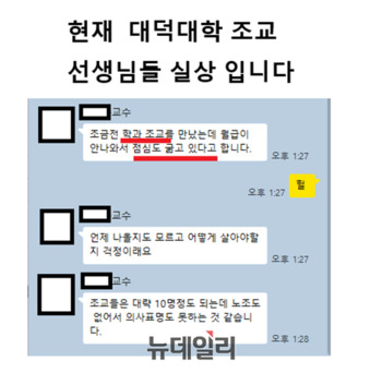 급여를 지급할 수 있는 법적·절차적 조건이 모두 갖춰졌음에도, 이사장 판단 하나로 이사회가 봉쇄되면서 대덕대학교 임금체불 사태가 한 달째 방치되고 있다.또 전 교직원 급여는 전액 미지급 상태이고, 조교들은 점심 한 끼를 걱정하는 지경에 이르렀다. 특히 ‘이사회