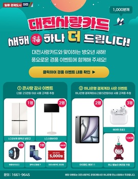 설 연휴 대전사랑카드 쓰면 경품 쏟아진다