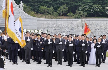 “대한민국을 지켜낸 당신! 영원히 기억하겠습니다.” 대전시는 제69회 현충일을 맞아 6일 국립대전현충원 현충 광장에서 추념식을 거행하고 나라사랑 정신을 다짐했다.시에 따르면 현충일 추념식에는 이장우 대전시장, 이상래 대전시의회 의장, 강만희 대전지방보훈청장 등