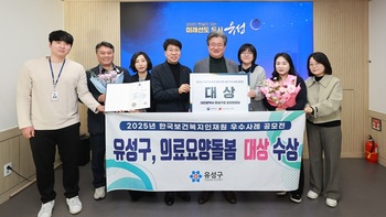 대전 유성구가 한국보건복지인재원 ‘2025년 의료·요양·돌봄 통합 지원 성과대회’에서 통합지원 우수사례 대상을 받았다. 또 지역 기반 통합 돌봄체계와 맞춤형 지원으로 고위험 당뇨 어르신의 재입원 위험을 낮춘 점이 높은 평가를 받았다.8일 유성구에 따르면, 지난
