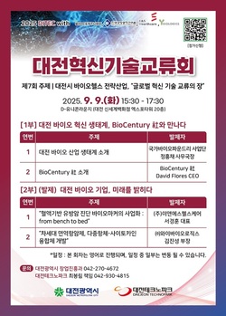 대전시는 오는 9일 대전신세계 엑스포타워 D-유니콘 라운지에서 ‘제7회 대전혁신기술교류회(DITEC)’를 개최한다고 2일 밝혔다.이번 교류회는 글로벌 바이오 전문매체 ‘바이오 센추리’의 방문을 계기로, 지역 바이오 생태계와 기업 성과를 세계와 공유하기 위해 마련됐다.행