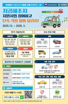 대전시는 내달 1일부터 2026년 3월 31일까지 겨울철 고농도 미세먼지 대응을 위해 ‘제7차 미세먼지 계절 관리제’를 시행하고, 배출가스 5등급 차량의 운행을 제한한다고 26일 밝혔다.이번 조치는 수도권과 부산·대구·광주·울산·세종 등 주요 특·광역시가 함께 참여하는