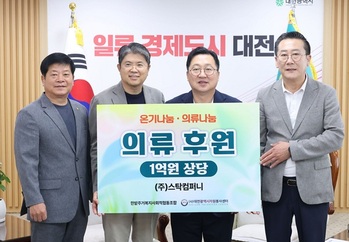 대전시와 스탁컴퍼니㈜가 어려운 이웃을 위해 마음을 모았다. 14일 대전시는 스탁컴퍼니가 대전시청에서 한밭주거복지사회적협동조합에 1억 원 상당의 의류와 잡화를 기탁했다.물품은 ‘온기나눔 의류매장’ 창고에 보관돼 재난 피해 지역과 사회적 취약계층에 전달된다.이장우