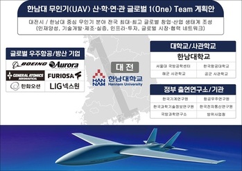 한남대는 미국 보잉, 제너럴아토믹스, 한화오션, 퓨리오사AI 등 국내외 우주항공·국방 분야 선도기업들과 함께 국내 최대 규모의 무인기(UAV) 창업·산업 생태계 조성에 나선다고 7일 밝혔다.한남대는 대전시 전략산업인 우주항공·국방 분야를 중심으로 △정부 출연 연구기관(