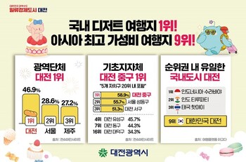 대전시는 ‘디저트 여행지’ 평가에서 전국 1위를 차지하며 ‘빵의 도시’ 위상을 다시 한번 입증했다고 6일 밝혔다.여행 리서치 기관 컨슈머인사이트가 발표한 ‘2025 여행자·현지인 국내 여행지 평가’에 따르면 대전시는 디저트류 추천 광역시 부문에서 46.9%의