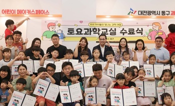 대전 동구는 지난 12일 동구청 1층 사이언스 라운지에서 ‘2025 토요과학교실’ 1기 수료식을 열고, 총 48명의 학생에게 수료증을 전달했다고 밝혔다.또 2기 참가자 모집은 내달 11일부터 동구 과학문화체험 플랫폼 누리집에서 진행된다.14일 동구는, 이번 프로그램은