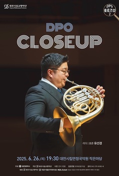 대전시립교향악단은 오는 26일 저녁 7시 30분, 대전시립연정국악원 작은마당에서 실내악 시리즈 ‘DPO 클로즈업 2’를 개최한다고 밝혔다.이번 무대는 호른 수석 유선경이 이끌며, ‘다양한 악기와 어울리는 호른’을 주제로 관객과 만난다.유선경은 동아음악콩쿠르 1위, 엘리
