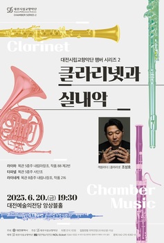 대전시립교향악단은 오는 20일 오후 7시 30분, 대전예술의전당 앙상블홀에서 챔버 시리즈 2 ‘클라리넷과 실내악’을 개최한다고 15일 밝혔다.도쿄 필하모닉 수석 클라리네티스트를 지낸 조성호가 객원 리더로 참여해 깊이 있는 목관 앙상블을 선보인다.조성호는 한국예술종합학교