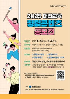 대전시교육청은 오는 30일까지 청렴 문화 확산을 위해 ‘2025 대전교육 청렴 콘텐츠 공모전’ 참여 접수를 진행한다고 밝혔다.10일 시 교육청에 따르면 이번 공모 주제는 청렴, 반부패, 상호 존중 조직문화이며, 비영리단체 2곳과 함께 공동 주관한다.분야는 △청렴 쇼츠
