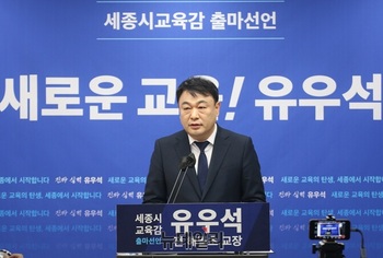 유우석 전 해밀초등학교 교장이 3일 세종교육감 선거 출마를 공식 선언했다.유 전 교장은 이날 오전 세종시청 정음실에서 기자회견을 열고 "학교가 단순히 지식을 전달하고 아이들을 관리하는 공간을 넘어, 아이 한 명 한 명의 삶을 함께 고민하고 끝까지 책임지는 교육을 세종에