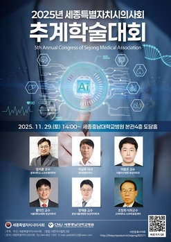 세종충남대학교병원(병원장 박재형)은 29일 오후 2시 병원 본관 4층 도담홀에서 세종시의사회 회원 100여명이 참석한 가운데 ‘2025년 추계학술대회’를 연다고 28일 밝혔다.이번 학술대회는 의료 인공지능(AI)의 임상 적용과 신약 개발 등 미래 보건의료기술을 주제로