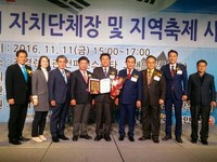 충북 청주시가 주최한 직지코리아 국제페스티벌이 ‘2016 도전! 자치단체 지역축제’ 시상식에서 우수 축제로 선정돼 11일 전경련 회관에서 상장과 상패를 받았다.이번 시상은 (사)도전한국인운동본부의 주관으로 지방자치제도를 성숙시키고 도전정신이 강한 자치단체와 지역축제를