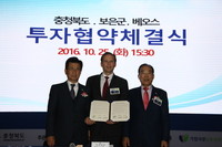 충북 보은군이 보은산업단지에 첫 외국기업을 유치하며 본격 해외 자본시장으로 눈길을 돌리고 있다.군은 25일 청주 그랜드호텔에서 충북도와 보은군, 트레보노·베오스 그룹(대표이사 Robert Slee)과 보은산업단지 2공구 내 6000만달러 규모의 MOU(투자양해각서)를
