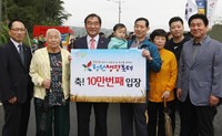 ‘2016 청원생명축제’가 개장 3일만에 관람객 10만명을 돌파하며 순항하고 있다. 시에 따르면 지난 2일 오전 10시 10만번째 주인공은 청주시 내덕동에 거주하는 김복순(84) 할머니 가족이 차지해 이승훈 청주시장으로부터 축하를 받았다.청원생명축제는 개천절까지 사흘