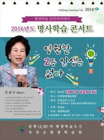 충북 옥천군평생학습원이 오는 10월 7일 유명 탤런트 전원주씨를 초청해 올해 두 번째 ‘명사학습 콘서트’를 연다.전 씨는 ‘영원한 2등 인생은 없다’는 주제로 2시간 동안 유쾌한 웃음과 삶의 진심이 담긴 얘기를 들려 줄 예정이다.전 씨는 지난 50여년 동안 여러 드라마