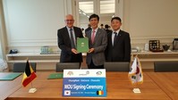 충남도는 28일 이차전지 분야 글로벌 선도 기업으로부터 7000만 달러 규모의 외자유치에 성공했다고 밝혔다. 유럽을 방문 중인 안희정 지사는 28일 벨기에 브뤼셀에서 마크 반 산데(Marc Van Sande) 유미코아(Umicore) 부회장, 서철모 천안부시장과 함께