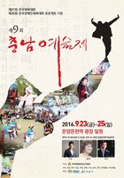 제97회 전국체육대회 및 제36회 전국장애인체육대회와 연계해 여는 ‘제9회 충남예술제’가 23일부터 사흘간 아산 온양온천역 광장에서 열린다.충남도 내 문화예술인들의 축제이자 화합·교류의 장인 이번 충남예술제는 두 체전이 스포츠와 문화·예술·사람이 어울린 문화체전으로 개