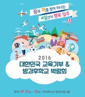 부산 BEXCO에서 열리는 ‘2016 교육기부&방과후학교 박람회’에 충북지역에서 만수초등학교, 부용초등학교, 오성중학교 등이 운영모델 부스를 만들어 참여하며 학교 홍보에 나섰다.22일부터 25일까지 열리는 이번 박람회는 ‘꿈과 끼를 찾아 떠나는 4일간의 행복일주’라는