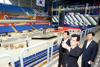 ‘2016청주세계무예마스터십’ 개·폐회식이 열리는 청주대석우문화체육관과 경기가 진행되는 청주시내 5개 경기장 환경조성 막바지 작업이 한창이다.대회 조직위원회는 31일 청주대석우문화체육관과 청주체육관, 청주유도회관 등 6개 경기장 내·외부 경기장 환경조성 작업이 마무리돼