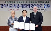 대전시교육청(교육감 설동호)이 24일 글로벌교육 역량강화 및 교육교류 협력을 위해 대전외국인학교(TCIS, 이사장 주영길)와 업무협약을 했다. 이번 협약은 관내 초·중·고생들의 영어 체험기회를 확대하고 교사들의 TCIS 수업 체험으로 토론식 수업, 자기주도적 학습방법