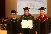 충북대학교는 24일 충북대 개신문화관에서 ‘2015학년도 후기 학위수여식’을 열고 학사 693명, 석사 300명, 박사 58명, 명예박사 1명 등 1052명에게 학위를 수여했다.이날 학위 수여식에서 지역사회의 발전과 지역인재 육성에 공을 세운 ㈜셀트리온 서정진 회장에게