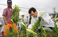 이시종 충북도지사가 2일 비오는 궂은 날씨에도 불구하고 심각한 인력난을 겪고 있는 농가의 일손을 돕기 위해 생산적 일손봉사 현장에 직접 나섰다.이날 이 지사와 송기섭 진천군수 등 자원봉사자들은 진천군 이월면에 위치한 화훼 수출 농가에서 새벽 5시부터 일손을 도왔다.이