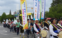 ‘청주사랑 화합의 길 순례’를 마무리하는 시가지를 행진이 1일 청주 상당공원에서 출발해 청주아트홀까지 진행됐다.이날 순례행사에는 50여개 민간사회단체와 청주지역 43개 읍·면·동 대표 200여명이 참여했으며 풍물패를 선두로 4개구 순례행사를 이끌어온 만장기들이 이어졌다