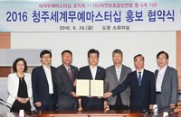 ‘2016 청주세계무예마스터십’조직위원회(위원장 이시종)가 24일 충북도청에서 자연보호중앙연맹(총재 이수광) 등 5개 기관과 대회 성공을 위한 홍보 협약을 맺었다.이날 협약을 맺는 단체는 (사)자연보호중앙연맹, (사)한국환경기술인협회, (사)대한약학회, K water충