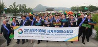 ‘2016 청주세계무예마스터십대회’의 ‘D-100 성공 기원 행사’가 7일 서울 광화문 북측 광장에서 성황리에 열렸다.이날 행사에는 이시종 충북도지사․한덕수 공동조직위원장을 비롯한 집행위원장인 이승훈 청주시장, 이언구 충북도의회 의장, 조직위원회 위원, 범도민협의회 위