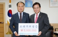 김동오 대한기계설비건설협회 충북도회장은 18일 김병우 충북도교육감에게 장학금 500만원을 전달했다고 밝혔다.김동오 회장은 이날 충북도교육청을 방문, 김 교육감에게 후학양성을 위해 써달라며 장학금을 전달했다.