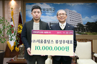 ㈜지움홀딩스의 류성우 대표가 22일 충북대학교 발전기금으로 1000만원을 기탁했다.류성우 대표는 충북대 고고미술사학과(08학번) 동문으로 이번 기탁식은 성정용 교수의 추천으로 성사됐다.기탁식에서 류 대표는 “충북대 동문으로서 후배들이 학업에 전념할 수 있도록 발전후원금