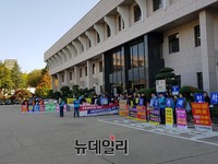 [포토] 대학노조, 국회 교육위 국정감사장 입구서 피켓 시위