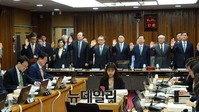 23일 충남대학교에서 열린 국회 교육문화체육관광위원회(위원장 유성엽)의 교육부 산하 기관인 서울대와 충남대‧충북대 등에 대한 국정감사에서 총장들이 선서를 하고 있다.피감기관인 총장들의 대표로 오덕성 충남대 총장이 선서를 했다.이날 피감기관은 충남대를 비롯해 서울대,