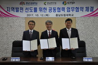 충남도립대학교가 12일 충남연구원 및 (재)충남테크노파크와 지역발전을 선도할 인재양성을 위한 공동협력 업무협약을 가졌다.이날 협약식에는 허재영 총장, 충남연구원 강현수 원장, ㈜충남테크노파크 윤종원 원장을 비롯한 관계자들이 함께 참석했다.협약에 따르면 충남도립대와 두기