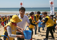 10년 전 시커먼 기름을 걷어낸 ‘기적’의 의미를 조명하고 서해안의 아름다움을 알리기 위한 ‘서해안 유류피해 극복 10주년 행사’가 15일 충남 태안 만리포해수욕장에서 닻을 올렸다.도는 이날 만리포해수욕장 희망무대에서 지역 주민과 자원봉사자, 문재인 대통령, 안희정 지