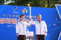 ‘제37회전국장애인체육대회’의 불을 밝힐 성화가 13일 충북 청주시에 도착했다.이날 오전 충주시 산척면 송강리의 천지인성단에서 칠선녀의 정성으로 채화된 성화는 음성군, 진천군, 증평군을 거쳐 청주시에 도착해 시민들의 열렬한 환영을 받았다.시청 광장에서 펼쳐진 환영식에는