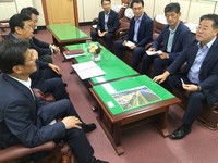 한국농어촌공사 정승 사장과 지역개발 담당자들이 지역 맞춤형 사업추진을 위해 4일 충북 제천시 화산동 소재지 종합정비사업 현장과 증평 에듀팜특구개발과 관련, 증평군을 방문했다.이날 공사에서는 지역개발 추진현황을 점검하는 한편 지자체 및 지역주민과의 대화를 통해 지역의 요
