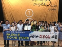 충북 증평군이 기초자치단체장의 공약이행우수사례를 평가하는 ‘2017 전국 기초단체장 매니페스토 우수사례 경진대회’에서 도시재생분야 최우수상을 받았다고 11일 밝혔다. 지난 9, 10일 이틀간 단국대학교 천안캠퍼스에서 진행된 이번 경진대회는 한국매니페스토실천본부가 주관하