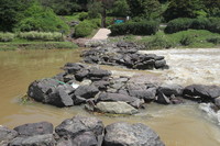 지난달 16일 내린 집중호우에 유실돼 임시 복구됐던 충북 진천군 문백면 농다리가 31일 시간당 70mm가 내린 집중호우로 인해 또 다시 유실됐다. 1일 진천군에 따르면 군은 지난달 16일 집중호우로 유실된 농다리를 임시 복구작업을 거친 뒤 다음달 고증을 통해 완전복구를