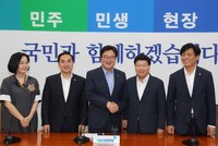 권선택 대전시장은 6일 오후 국회에서 더불어민주당 우원식 원내대표와 김태년 정책위원회 의장 등과 만나 4차 산업혁명 특별시 조성 등 대통령 공약 및 지역현안에 대한 지원을 건의했다.시는 그동안 대선 이후 대통령 공약의 국정과제 반영을 위해 지역 국회의원 간담회, 국정기