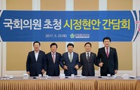 대전시는 25일 국회에서 국회의원 초청 시정현안 간담회를 개최, ‘4차 산업혁명 특별시 육성’ 등 문재인 대통령의 9개 대선공약 국정 과제 반영과 2018년 국비확보에 선제 대응에 나섰다.간담회에는 권선택 시장과 이장우 의원(동구), 박병석 의원(서구 갑), 박범계 의