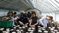 직원 20여명, 표고버섯 배지 비닐 벗기기·목이버섯 따기 등