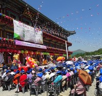 대전 광수사 부처님오신날 ‘부처님 자비 되새겨’김무원 주지 “나눔·봉사로 즐거운 세상 인도하자” 봉축 법어권선택 시장·신도 등…8000여명 참석대한불교 천태종 대전 광수사(주지 김무원) 불기 2561년 부처님오신날 봉축법요식이 3일 오전 광수사 경내에서 권선택 대전시장