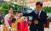 안희정 충남지사가 3일 예산 수덕사 대웅전 앞마당에서 열린 불기 2561년 부처님 오신 날 봉축법요식에 참석, 부처님 오신 날의 숭고한 뜻을 새기고 도민과 함께 부처님의 자비를 되새겼다.이날 봉축법요식에서 안 지사를 비롯해, 수덕사 주지 정묵 스님과 신도, 지역 주민