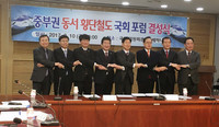 ‘중부권 동서 횡단철도’의 대선공약화를 위해 충청권과 영남권 국회의원이 함께 손을 잡았다.10일 국회 의원회관에서 새누리당 박찬우, 더불어민주당 박완주, 양승조 국회의원 등 충청·영남지역 국회의원 15명이 참석한 가운데 서해부터 동해까지 철도로 연결하는 중부권 동서 횡