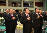 사진설명 – 충북대학교 동문들이 기념사진을 촬영하고 있다.충북대학교 총동문회는 지난 6일 법학전문대학원 다목적 홀에서 ‘2017 충북대학교 총동문 신년회’를 개최하고 변재경 교수 등 5명에게 축하패를 전달했다. 이날 신년회에는 2016년 충북대를 빛낸 충북대 체육교육과