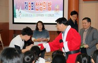 권선택 시장은 24일 성탄절을 맞아 중구 산성지역아동센터를 이용하는 50여명의 아동들과 즐거운 시간을 보내며 아기예수 탄생을 축하했다. 권 시장은 이날 산성지역아동센터 50여명의 아동과 학부모 등 70명과 함께 장기자랑, 합창, 선물나누기, 간식시간 등을 보며 깜짝 선