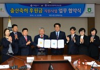 충북 제천시(시장 이근규)와 제천단양축산농협(조합장 진항구)이 출산율 제고를 위해 손을 잡았다. 시는 22일 시청 정책회의실에서 제천단양축산농협과 ‘출산축하후원금 지원 업무협약’을 체결하고 출산분위기 조성을 통해 출산율을 높이는데 상호 협력하기로 했다. 이날 협약에서