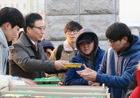 국립 한국교통대학교(총장 김영호)는 13일 각 캠퍼스(충주·증평·의왕)별로 ‘총장이 쏜다’이벤트를 진행했다.이번 이벤트는 2016학년도 2학기 기말고사 기간 중 정진하는 학생들을 격려하기 위한 것.김 총장은 이날 오전 8시 30분부터 충주캠퍼스 정문 안내실 앞에서 학생